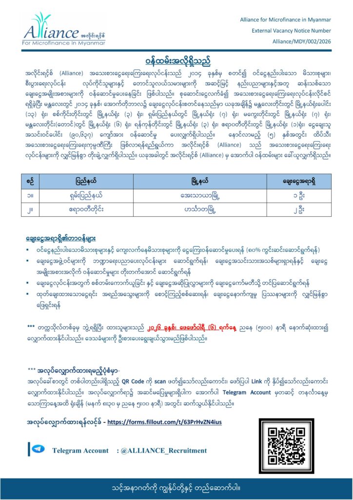Client Officer – 3 Post (Hinthada, Aye Thar Yar)
